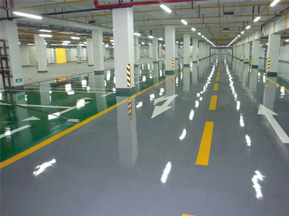 停車場專用環氧樹脂(Epoxy)砂漿地坪漆整體無縫、防塵、耐磨防滑、耐酸抗堿、清潔容易、保養方便、外觀亮麗、顏色多樣、施工簡單、成本經濟,一次施工,可達防塵、耐磨、防水、防火等多種性能。施工厚度可任選,一般0.5mm-3mm均可達使用要求,使用年限在5-15年