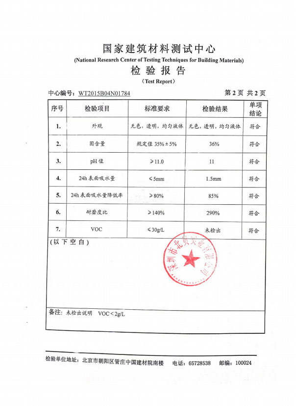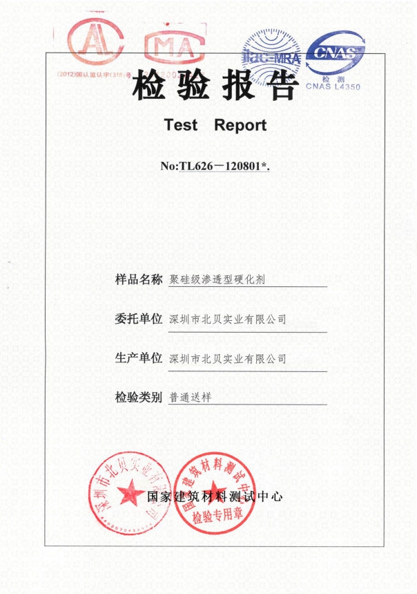 聚硅級(jí)滲透型硬化劑檢測(cè)報(bào)告